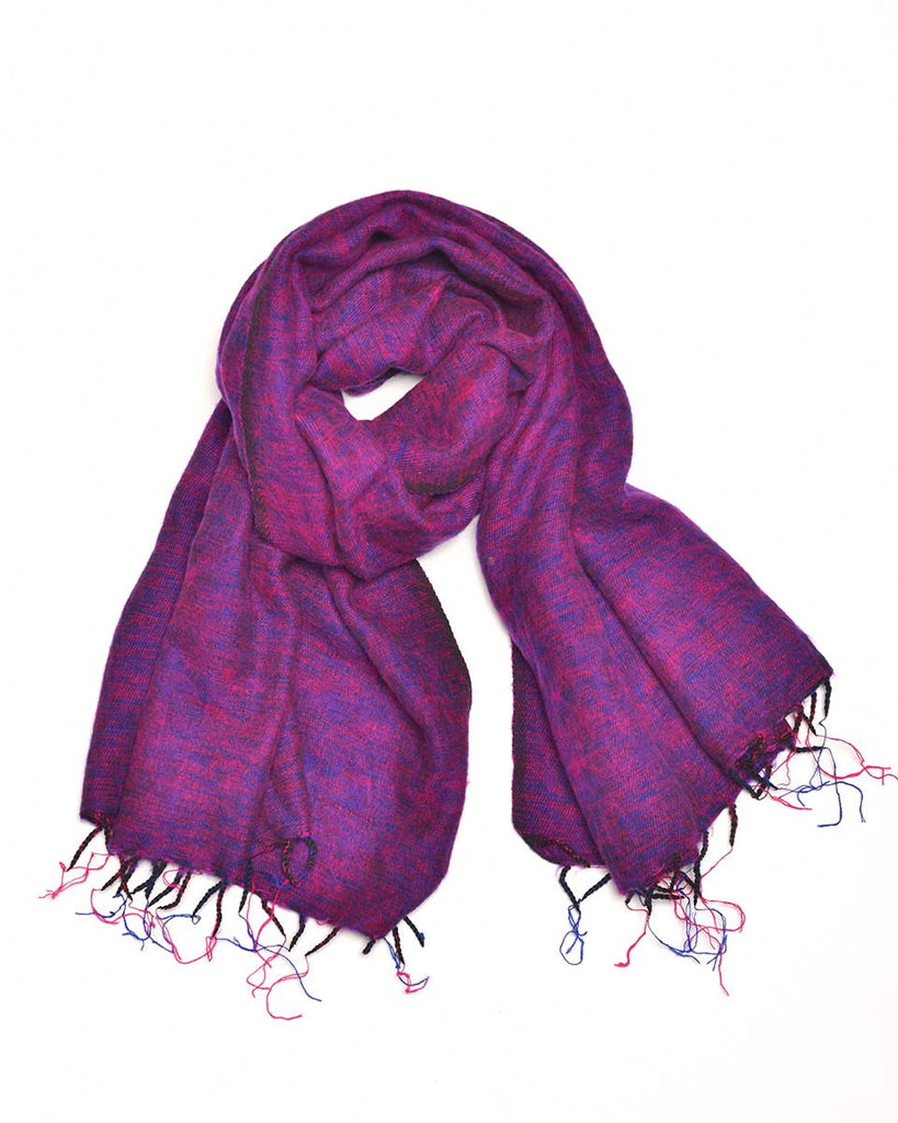 Woven shawl, hand loomed in Nepal. The weft is 100% acrylic woven on a cotton warp. After the weaving process the material is brushed to bring out its incredible softness and can be re-brushed after heavy use. Available in 53 vibrant colors, handmade in Nepal.