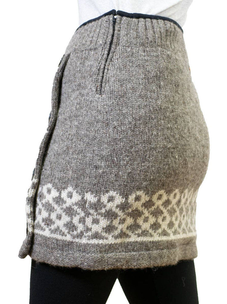 This soft hand-knit New Zealand wool skirt sports a longer length than our miniskirts, ideal for those cooler days. The wool fabric is the perfect weight for spring, summer and fall, and can even be worn with tights for the winter months. Buttons on the side complete the stylish looks on this fashionable skirt, and a side zip adds convenience to daily wear.