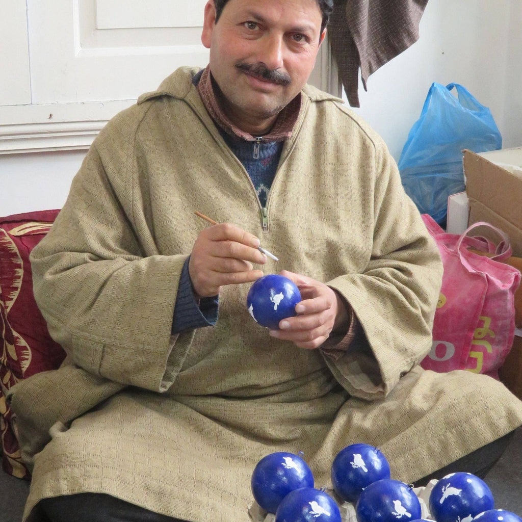 Story behind the Art: Papier Mache is a handicraft that originated in Persia and was introduced to India in the 14th century by a Muslim saint. The craft is made from paper pulp and crafted into colorful, beautifully decorated pieces such as ornaments, bowls, boxes, and trays. The process of making papier-mâché in Kashmir involves several steps, starting with pulping the paper which is soaked in water for several days, then ground in a stone mortar until it's a uniform consistency. Handmolds are used to create the base form. Papier Mache is an age-old art that has been passed down from father to son for generations.