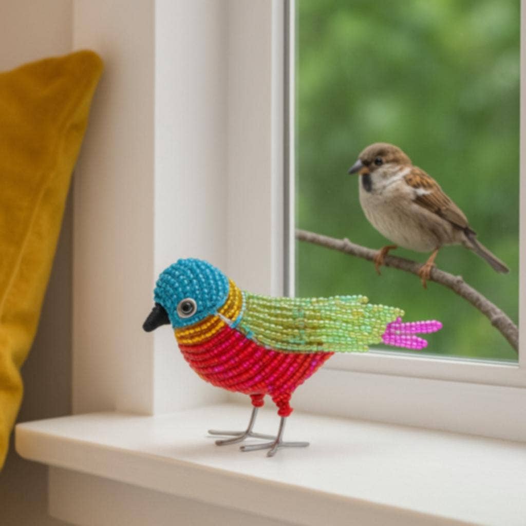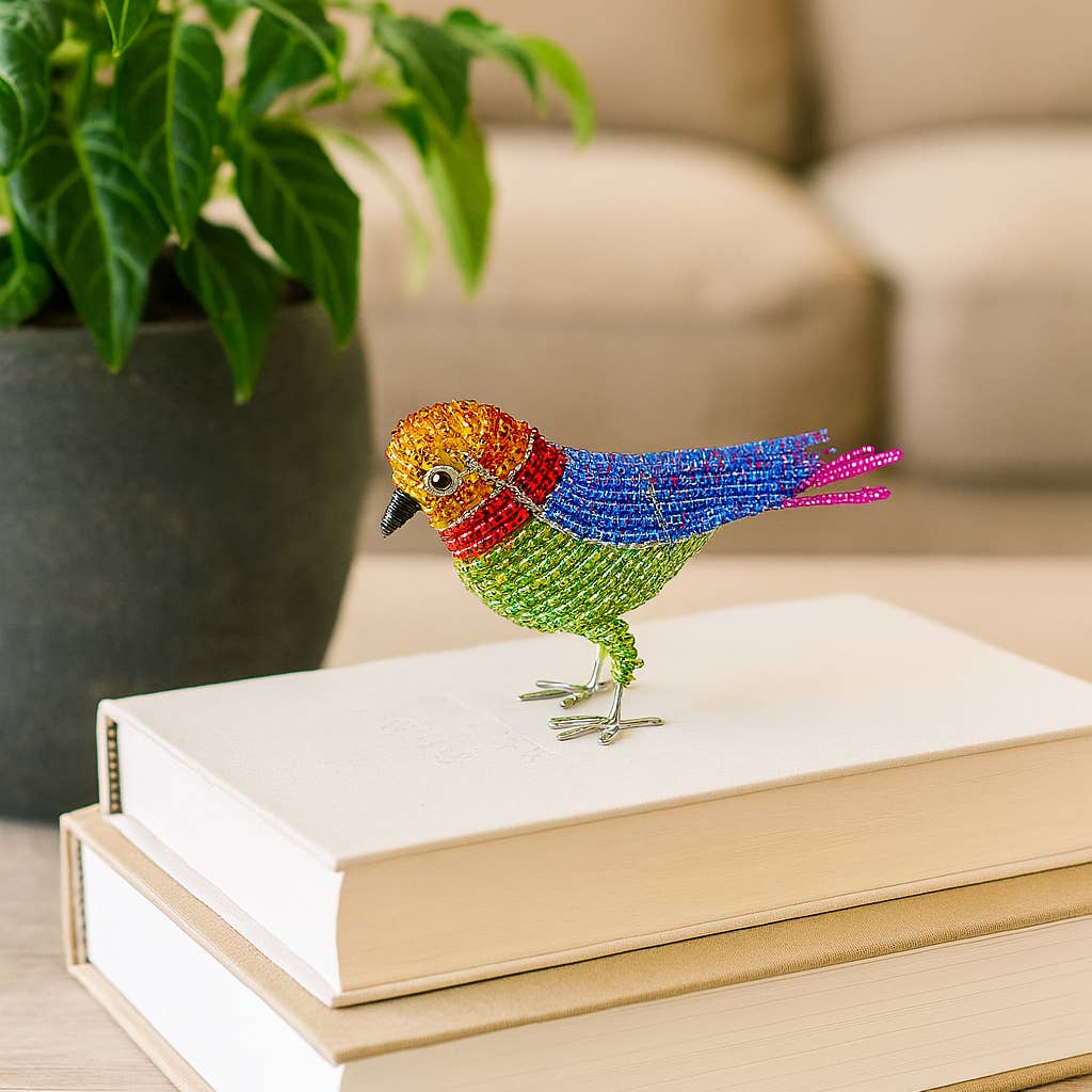 Features: * 5 x 2 x 3 * Hand sculpted and beaded * Beads are high quality non fading or cracking glass and acrylic * Piece resist rust and corrosion, great inside or out * Affordable work of art * All dimensions are in inches