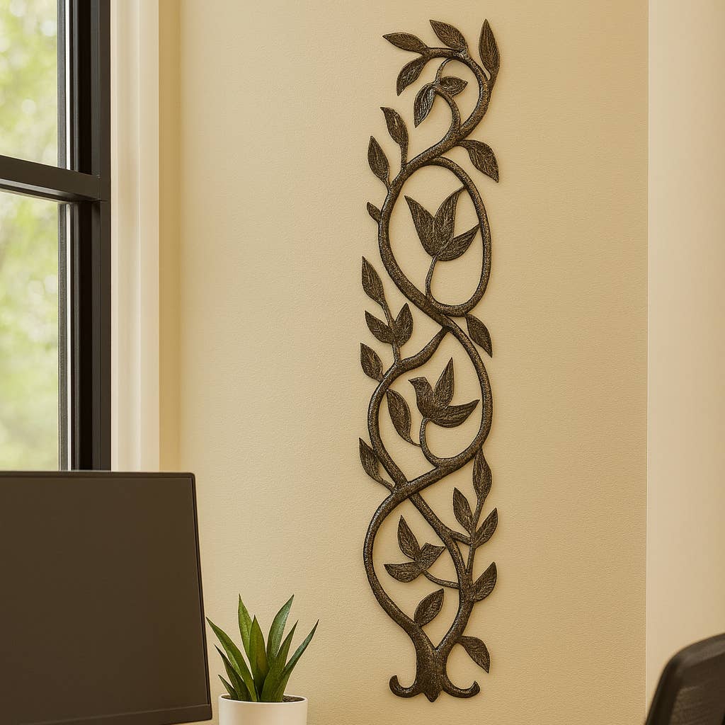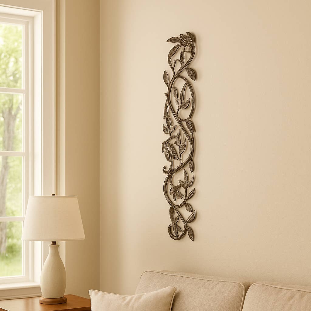 A 2022/2023 new arrival to the Beyond Borders Haitian metal art line, Climbing Vine is a floral metal art piece made for both indoor and outdoor decorative use. The perfect decorative metal art piece for your home's patio or garden area.