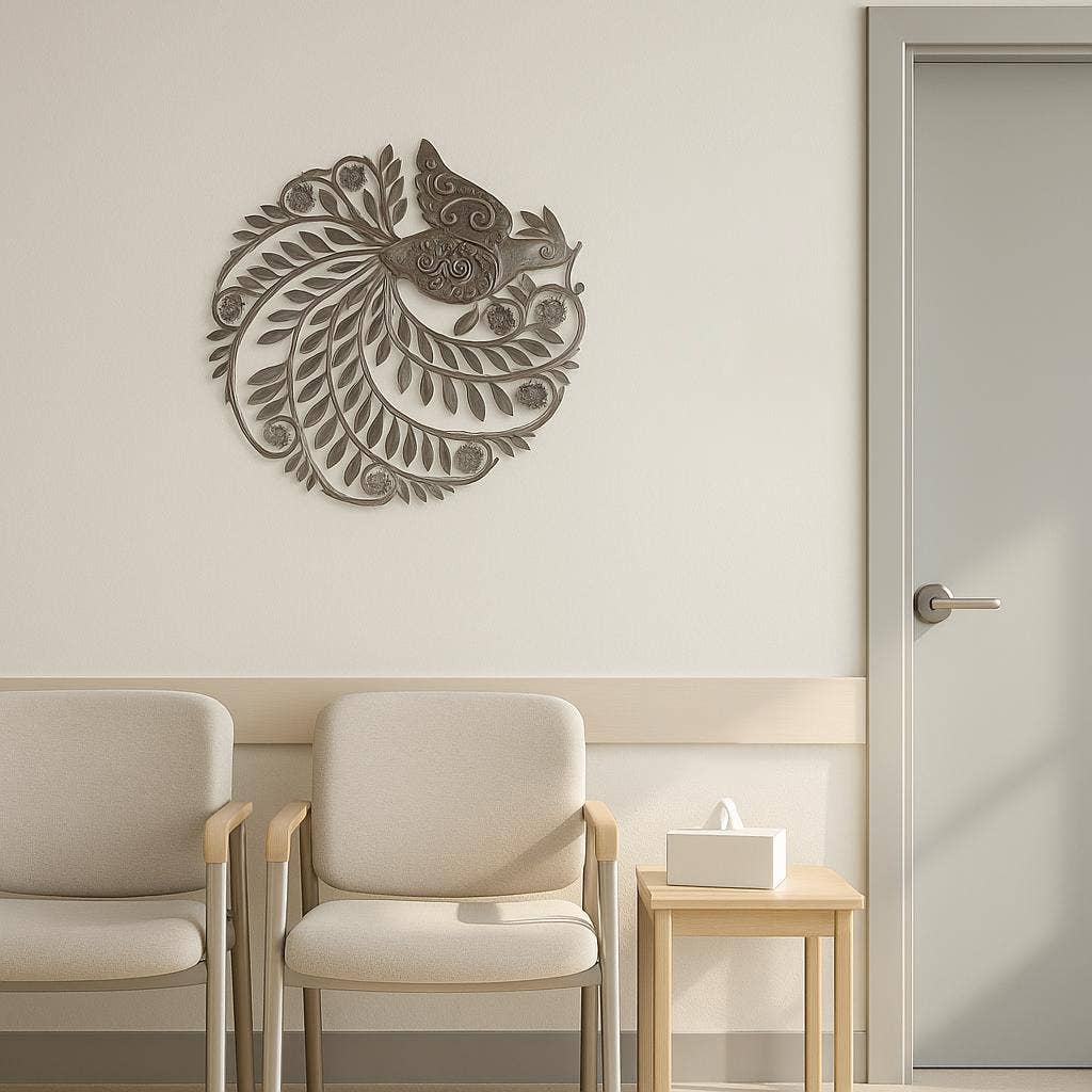 23" x 23" This wonderful new bird round is branching out, with magnificently crafted 3D wing details… really special. Created by Cineus Louime. * Fair Trade Federation-certified steel Haitian metal art * Coated with a protective gloss varnish * Dimensions: 23" x 23" * Handcrafted at the Village Artistique de Noailles in Croix-des-Bouquets, Haiti by Haitian metal artists A folk art that dates back to the mid-20th century, Haiti metal art today is the art of recycling and transforming discarded steel oil drums into ornate metal artwork. As handmade Haitian metal art, there will be slight variations from one piece to another, adding to the unique character and value of each piece of metal art.