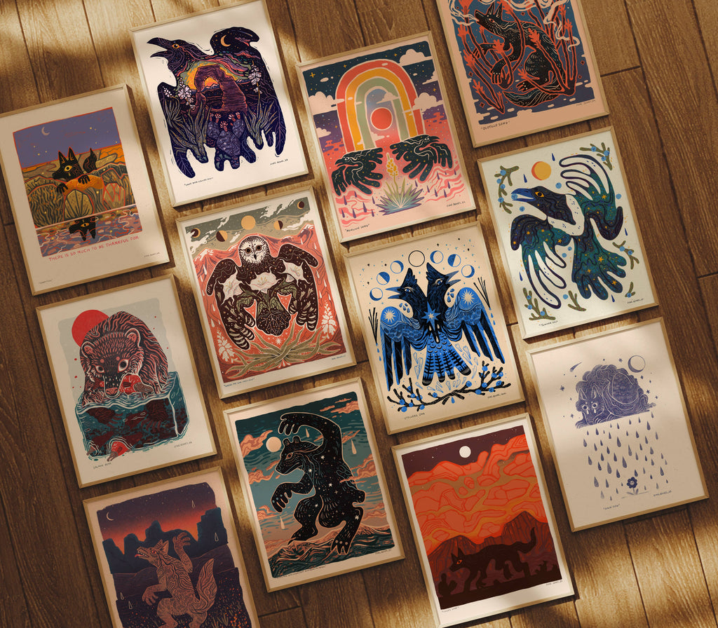 Pinebones is a queer Southwestern illustrator creating folk art inspired by wilderness, wildlife, and landscapes. Based in the remote Utah desert, their work blends storytelling and nature, offering art that brings a sense of place and spirit to any space.