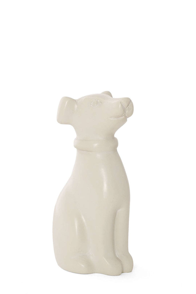 What a good boy! Kenyan artisans hand carve this composed sculpture of a dog from soft soapstone. A fantastic gift for pet owners, each sculpture conveys a unique personality through carved details. Sold singly. Because these are handcrafted items, each will vary slightly. Dimensions: 2"L x 1.5"W x 4"H Crafted from: Soapstone Made in: Kenya