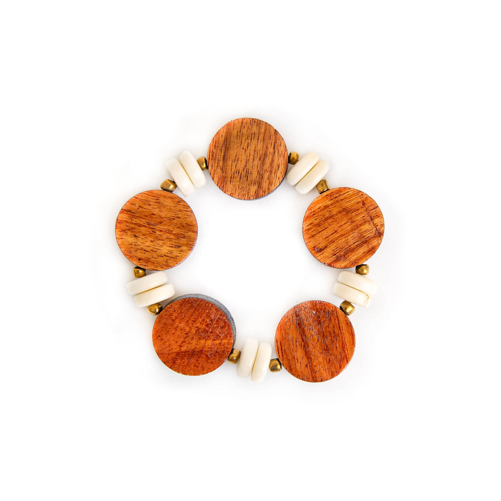 An essential for your arm party -- this lightweight recycled wood and coconut shells bracelet includes earthy tones. Pair this bracelet with our New Margo earrings.