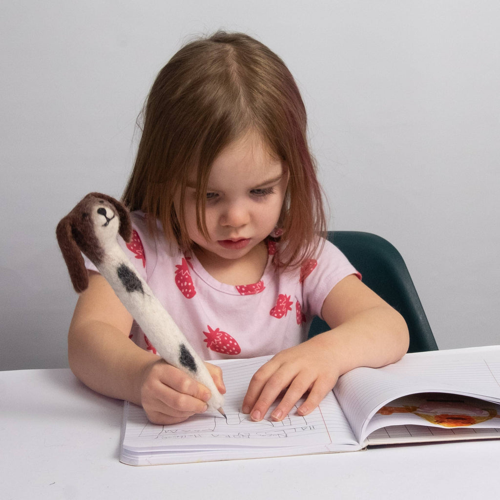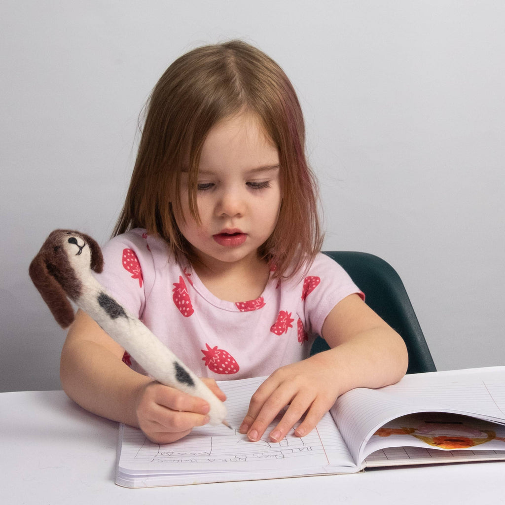 Handmade felt dog pencil toppers are super cute. They make writing fun, and can also be used as a small puppet. Handmade in Nepal