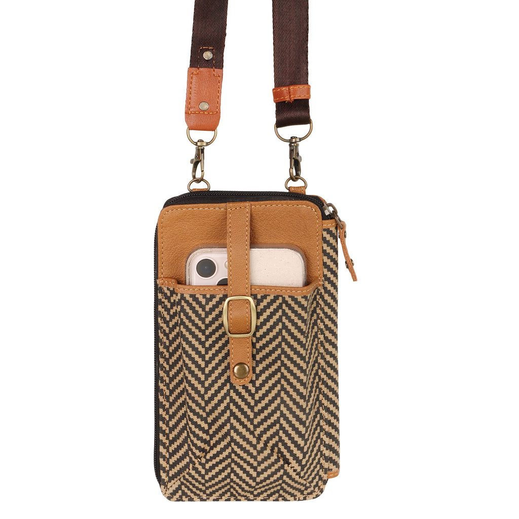 Perfect for a night on the town, this sustainable cellphone wallet holds your cards, cash, and phone in a lightweight, crossbody style. With plenty of card slots and a zippered pocket on the interior, and our signature upcycled leather and recycled canvas on the exterior.